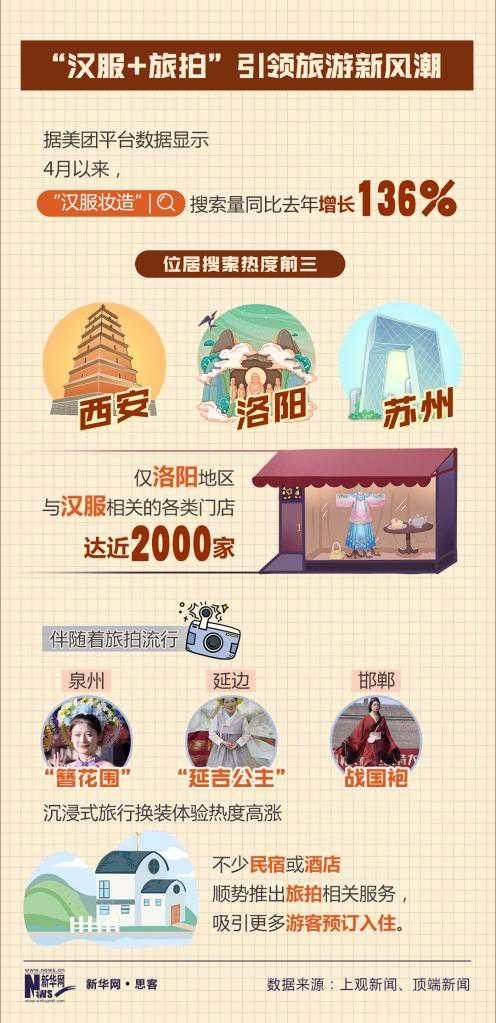 美團(tuán)平臺(tái)數(shù)據(jù)顯示,4月以來(lái),“漢服妝造”搜索量同比增長(zhǎng)136%。西安、洛陽(yáng)等街頭,隨處可見(jiàn)身著漢服的年輕人在博物館、遺址公園等景區(qū)打卡拍照,摩肩接踵間皆是“貴妃”,文博景區(qū)附近不少商鋪以漢服妝造店為主。不少民宿或酒店,順勢(shì)推出旅拍服務(wù),吸引更多年輕人預(yù)定入住。