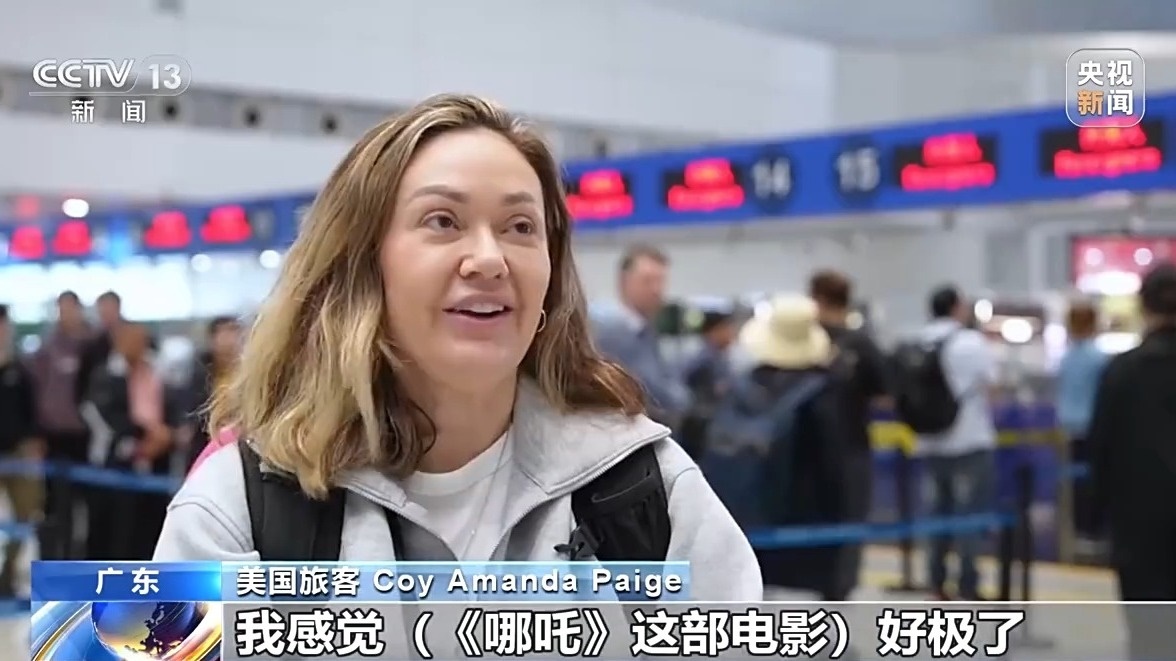 美國旅客 Coy Amanda Paige:我來自美國,我感覺《哪吒》這部電影好極了,我想讓我女兒看,我想她會喜歡的。