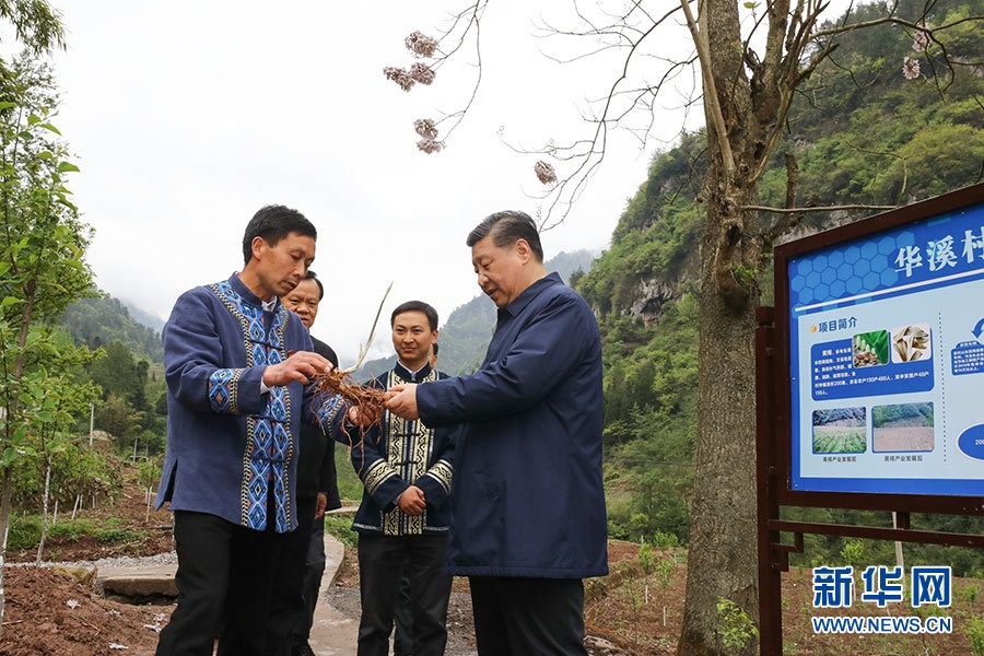 走訪一家脫貧戶,他沿著鄉(xiāng)間小路步行察看自然環(huán)境、村容村貌,了解該村通過(guò)種植中藥材黃精等特色經(jīng)濟(jì)作物帶動(dòng)村民脫貧的情況。