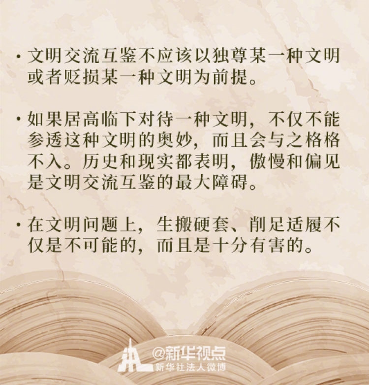 在這次演講中,習(xí)近平主席用生動(dòng)的語言講明了對(duì)待不同文明應(yīng)有的態(tài)度和原則: