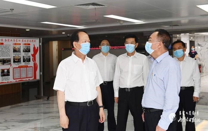 7月13日,自治區(qū)黨委書記、人大常委會主任石泰峰來到蒙商銀行新城支行調(diào)研。內(nèi)蒙古日報記者 袁永紅 攝