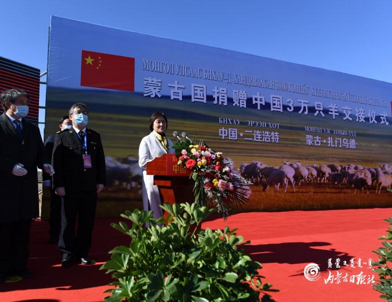 秋風(fēng)送爽,牛羊肥碩。10月22日上午,首批4000只蒙古國捐贈羊經(jīng)二連浩特口岸入境中國,中蒙雙方在確保防疫安全的前提下,在二連浩特—扎門烏德口岸舉行交接儀式。
