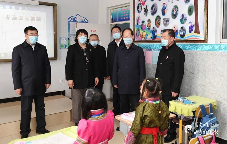 11月9日,自治區(qū)黨委書記、人大常委會主任石泰峰來到錫林浩特市民族小學(xué)了解學(xué)生學(xué)習(xí)情況。內(nèi)蒙古日報記者 袁永紅攝