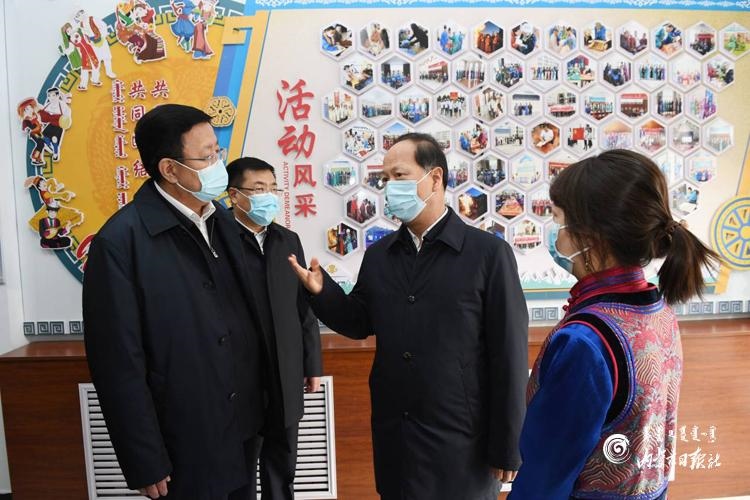 11月9日,自治區(qū)黨委書記、人大常委會主任石泰峰,來到錫林浩特市巴彥查干街道辦事處達布希勒特社區(qū)黨群服務(wù)中心,了解民族團結(jié)進步工作開展情況。內(nèi)蒙古日報記者 袁永紅攝