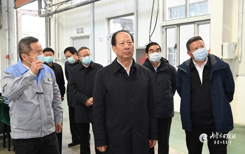 深秋將盡,土右旗新型工業(yè)園區(qū)新特能源高純多晶硅項(xiàng)目施工現(xiàn)場依然熱火朝天,平均每天都有數(shù)千名工人加班加點(diǎn)施工作業(yè)。石泰峰一走進(jìn)項(xiàng)目工地,就被這里如火如荼的建設(shè)場景所感染。他認(rèn)真聽取園區(qū)建設(shè)、項(xiàng)目實(shí)施情況介紹,詳細(xì)了解智能綠色工廠建設(shè)、低碳循環(huán)經(jīng)濟(jì)產(chǎn)業(yè)鏈布局等情況。得知項(xiàng)目開工以來僅用3個(gè)多月時(shí)間就完成絕大部分基建工程任務(wù)、進(jìn)入設(shè)備安裝階段,石泰峰欣慰地說,工作推進(jìn)有力度,項(xiàng)目建設(shè)才會(huì)有速度,只有實(shí)打?qū)嵉馗刹拍芤姷竭@樣的成效。他勉勵(lì)新特能源公司“行如其名”,把更多具有“新”和“特”的優(yōu)勢產(chǎn)業(yè)布局到內(nèi)蒙古,積極引進(jìn)發(fā)展低能耗、低排放、高附加值的產(chǎn)業(yè)項(xiàng)目,為促進(jìn)地方經(jīng)濟(jì)高質(zhì)量發(fā)展貢獻(xiàn)力量。在雙良硅材料公司、金力永磁公司、大地熊永磁科技公司、杉杉科技公司、華鉞實(shí)業(yè)公司和萬科奧運(yùn)冰雪中心,石泰峰走進(jìn)工地、車間、展廳,與企業(yè)負(fù)責(zé)人深入交流,詢問企業(yè)對地方營商環(huán)境的感受和評(píng)價(jià)??吹礁鱾€(gè)項(xiàng)目都在抓進(jìn)度、趕工期,推進(jìn)速度快、成效好,石泰峰給予充分肯定。他指出,一個(gè)地區(qū)的營商環(huán)境好不好,不是政府說了算,而是市場主體說了算,主要看企業(yè)愿意不愿意來投資,企業(yè)來了以后項(xiàng)目推進(jìn)得快不快、建設(shè)得好不好。他對當(dāng)?shù)馗刹空f,只有我們有誠心、有決心,企業(yè)投資發(fā)展才會(huì)有信心。要持續(xù)用力抓好優(yōu)化營商環(huán)境工作,把服務(wù)保障企業(yè)運(yùn)行和項(xiàng)目建設(shè)作為重中之重,及時(shí)研究解決企業(yè)反映的困難和問題,切實(shí)為企業(yè)提供全方位全周期的優(yōu)質(zhì)高效服務(wù)。