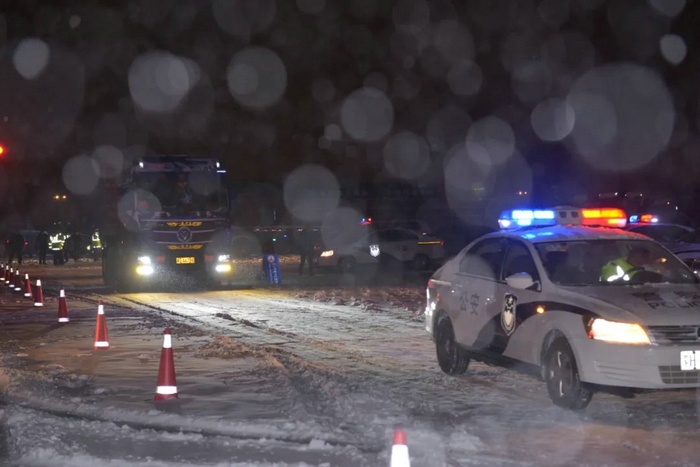 早上4時(shí)30分,經(jīng)公安民警、防疫工作人員認(rèn)真核對司乘人員48小時(shí)內(nèi)核酸檢測陰性證明、車輛信息及編號等準(zhǔn)備工作后,229輛大貨車按照20輛一組要求,在警車的護(hù)送下順利駛出二連浩特市。