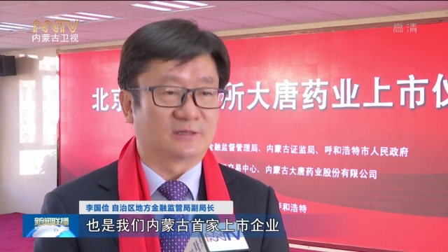 鄒烏蘭內蒙古臺記者:這里是內蒙古股權交易中心,隨著北京證券交易所鳴鐘開市,內蒙古大唐藥業(yè)股份有限公司在北交所開市當天正式上市,這也是內蒙古第一家在北交所上市的企業(yè),標志著內蒙古率先參與北交所改革并實現(xiàn)重要突破。
