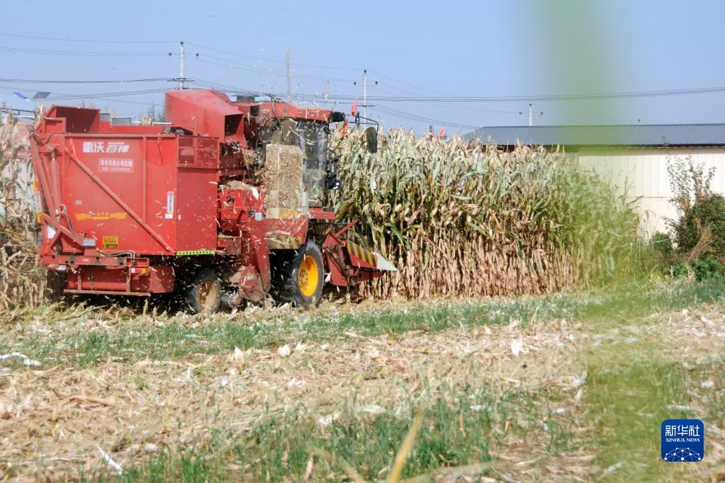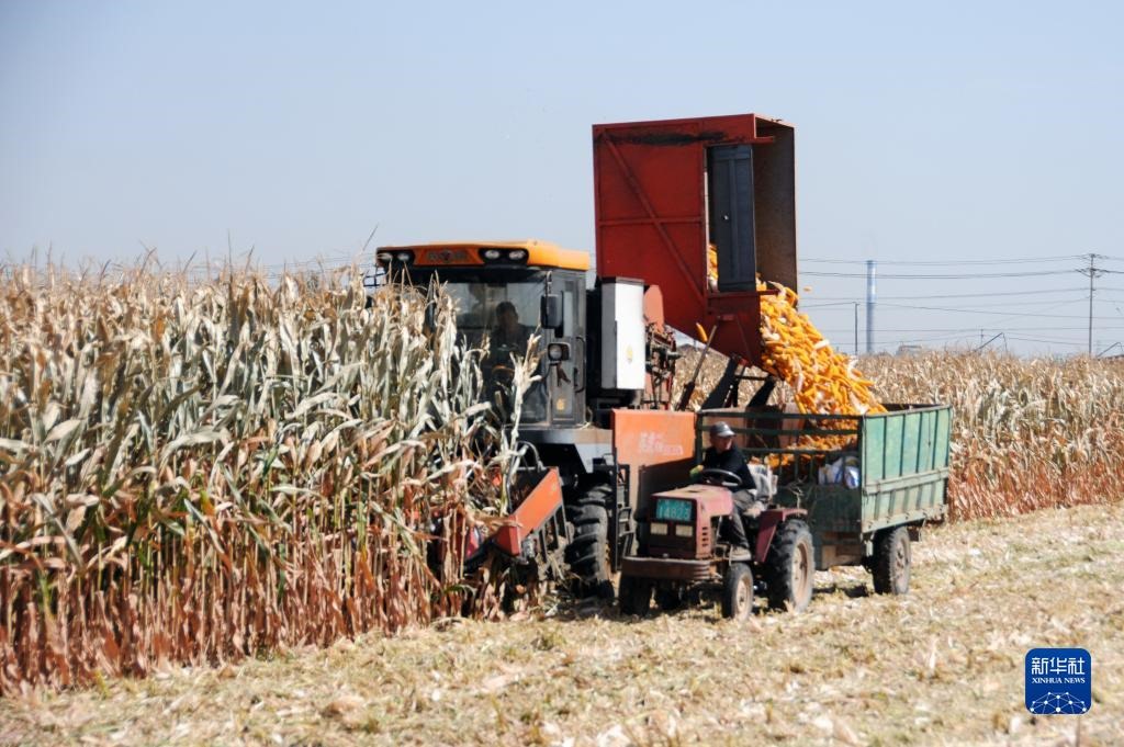 臨河區(qū)干召廟鎮(zhèn)黃濟(jì)村村民收割玉米。(新華社記者李云平 攝)