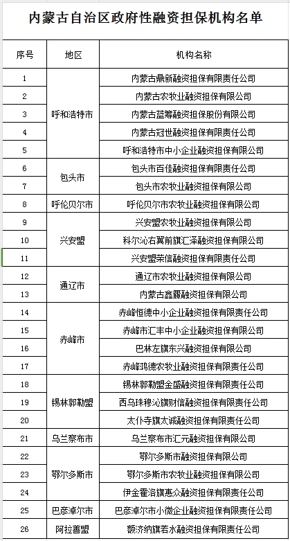 關于公布內(nèi)蒙古自治區(qū)政府性融資擔保機構名單的通知