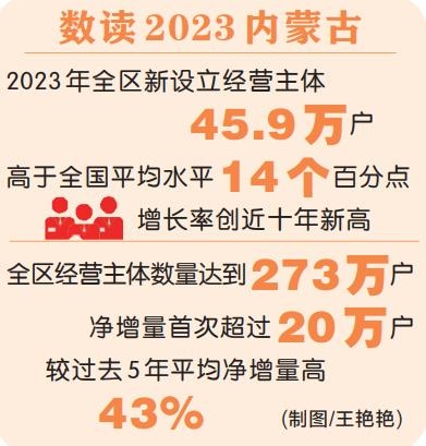 經(jīng)營(yíng)主體迸發(fā)出新活力。2023年,自治區(qū)市場(chǎng)監(jiān)管局出臺(tái)便捷市場(chǎng)準(zhǔn)入助力招商引資九條措施,取消、下放行政審批事項(xiàng)26項(xiàng),減少環(huán)節(jié)113個(gè)。個(gè)體工商戶設(shè)立登記等31項(xiàng)、589項(xiàng)具體項(xiàng)目實(shí)現(xiàn)全區(qū)通辦,申請(qǐng)人可以在“家門(mén)口”辦“外地事”,全區(qū)經(jīng)營(yíng)主體呈現(xiàn)數(shù)量增長(zhǎng)、結(jié)構(gòu)優(yōu)化、活躍度提升的良好態(tài)勢(shì)。2023年全區(qū)新設(shè)立經(jīng)營(yíng)主體45.9萬(wàn)戶,高于全國(guó)平均水平14個(gè)百分點(diǎn),增長(zhǎng)率創(chuàng)近十年新高;全區(qū)經(jīng)營(yíng)主體數(shù)量達(dá)到273萬(wàn)戶,凈增量首次超過(guò)20萬(wàn)戶,較過(guò)去五年平均凈增量高43%。在培育壯大經(jīng)營(yíng)主體上,集成金融、用工、創(chuàng)新等各領(lǐng)域15條硬措施落地,小微企業(yè)和個(gè)體工商戶總量分別增長(zhǎng)7.59%和7.3%。在激發(fā)經(jīng)營(yíng)主體創(chuàng)新活力上,推動(dòng)“一站式”服務(wù)進(jìn)園區(qū)、進(jìn)企業(yè),服務(wù)企業(yè)44761家,減免費(fèi)用、節(jié)約成本7154萬(wàn)元?!懊伞弊謽?biāo)認(rèn)證帶動(dòng)377種產(chǎn)品實(shí)現(xiàn)增值,知識(shí)產(chǎn)權(quán)質(zhì)押融資達(dá)到48.21億元。