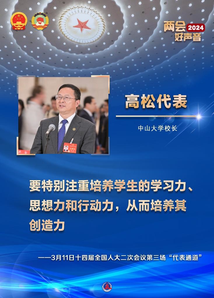 青年人是未來創(chuàng)新的希望。對于如何培養(yǎng)學生的創(chuàng)造力,中山大學校長高松代表給出了他的答案:要特別注重培養(yǎng)學生的學習力、思想力和行動力,從而培養(yǎng)其創(chuàng)造力。