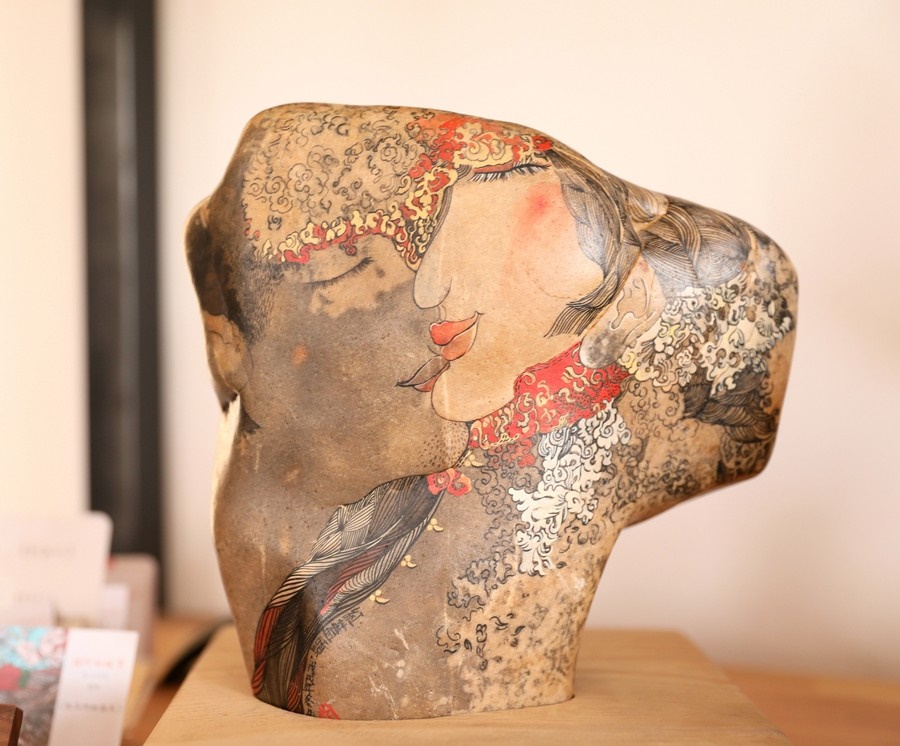 自2016年起,魯婷開始用黃河石畫的形式,講述母親河的故事。2018年,魯婷在西行客棧建立了自己的工作室,向社會(huì)各界免費(fèi)開放,用黃河石彩繪的方式,為北疆文化注入新的思想和內(nèi)涵。
