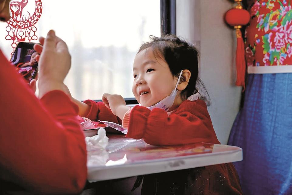 興安盟文化旅游體育局市場科科長徐丹丹說:“我們把車廂分別以最炫民族風(fēng)、東北年味兒、冰雪奇緣、野生動(dòng)植物樂園等4種風(fēng)格進(jìn)行裝飾,并按照冬日節(jié)氣和傳統(tǒng)節(jié)日為節(jié)點(diǎn)開展‘非遺’專場活動(dòng),其中,‘美麗工坊’最受歡迎。此外,我們還在列車上組織了研學(xué)、奇幻旅途系列活動(dòng),讓游客有一段不一樣冰雪體驗(yàn)之旅?!?/p>