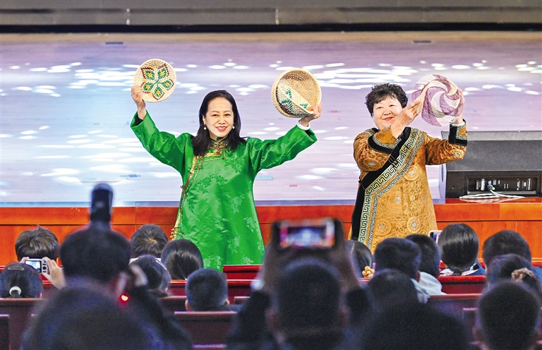 對接會設在北京一零一中學圓明園校區(qū),現場,內蒙古特色非遺、歌舞表演異彩紛呈,鮮活展現絢爛多彩的北疆文化。北京交通大學現代旅游研究學院院長張輝作“研學旅游高質量發(fā)展”主旨演講。自治區(qū)文旅廳發(fā)布了2025年研學旅游新品,重磅推出深度融合內蒙古的自然地理、歷史文化、科學技術與民族風情的4條主線、20條支線的研學旅行路線,還系統推出一批具有地域特色與文化內涵的精品主題研學旅游產品,全方位展示了內蒙古研學旅游的獨特魅力和發(fā)展?jié)摿?。內蒙古藝術劇院烏蘭恰特藝術培訓中心推介了北疆文化藝術研學產品;中國鐵路呼和浩特局發(fā)布京蒙研學旅游專列計劃,并進行京蒙兩地研學公司客源互通簽約儀式;中國旅游協會研學旅行分會與內蒙古自治區(qū)旅游協會進行合作簽約?;顒舆€設置“少年那達慕”互動體驗,吸引不少青少年現場打卡體驗北疆文化。“內蒙古是一個自然與人文交織的遼闊課堂,期待走進內蒙古,用腳步丈量、用心靈感受內蒙古?!北本┙逃龑W院豐臺分院附屬學校學生高晟恩說。