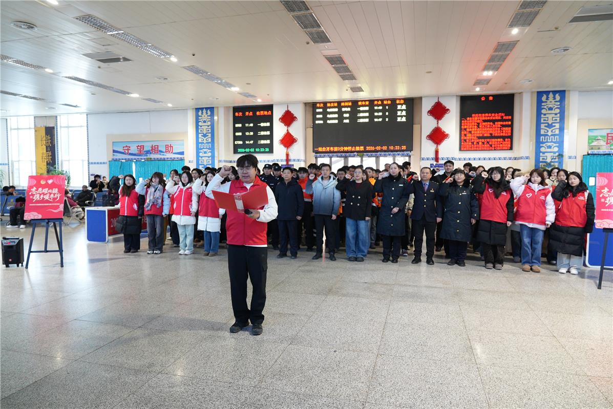 “阿姨您慢點(diǎn),檢票口在二樓,行李我來幫您拎?!?9歲的杜鐵毅快步上前,穩(wěn)穩(wěn)接過老年旅客手中沉甸甸的編織袋。連日值守讓他的聲音帶著一絲忙碌后的沙啞,眼里的熱忱卻絲毫未減。作為興安盟向陽環(huán)保青年志愿者協(xié)會(huì)會(huì)長(zhǎng),這個(gè)春節(jié),他和志愿者們幾乎天天“泡”在車站,從進(jìn)站引導(dǎo)、行李搬運(yùn)到車次咨詢、換乘指引,用周到細(xì)致的服務(wù),為奔波的歸途人送上新春里最真切的暖意。