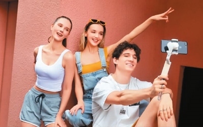 消費(fèi)者使用浩瀚卓越手機(jī)穩(wěn)定器進(jìn)行自拍。資料圖片