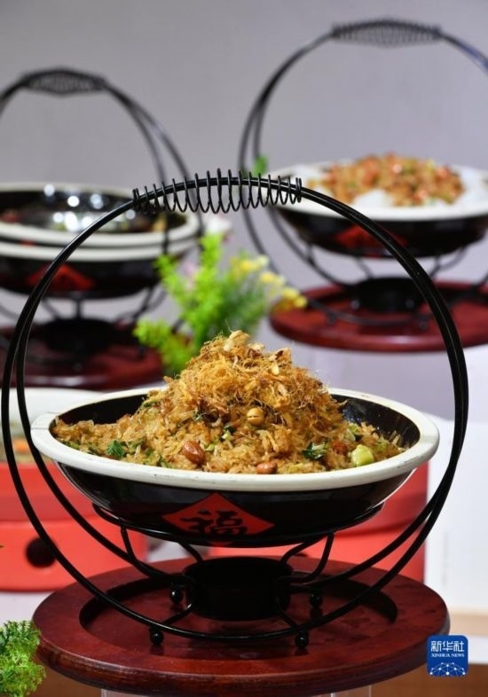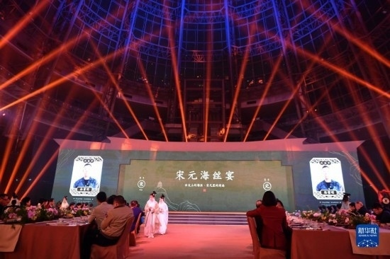 當(dāng)日,福建泉州石獅市舉辦“閩菜地標(biāo)美食城市”授牌暨“宋元海絲宴”推介儀式?!八卧=z宴”以南宋福建泉州石獅籍美食家林洪著作《山家清供》為還原藍本,兼收閩南名菜,集山珍、海味于一席,將菜品、宴席與宋元器皿、場景、樂曲、詩詞等融合,展現(xiàn)宋元時期世界海洋商貿(mào)中心獨特的美食文化。新華社記者 魏培全 攝