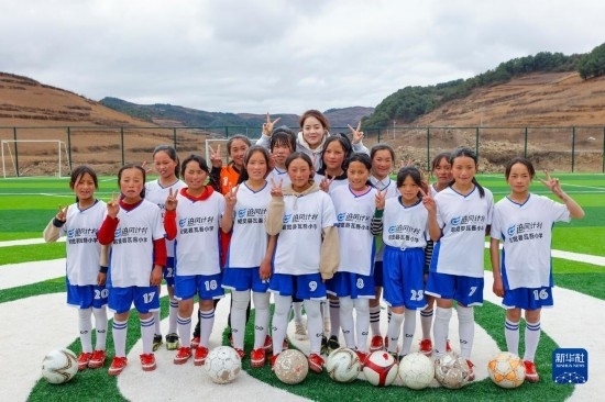 四川省涼山州昭覺縣瓦吾小學(xué)坐落于海拔約2700米的大涼山上,因?yàn)榈乩砦恢闷А⒁荒晁募驹旗F繚繞而得名“云端小學(xué)”。校長曲比史古2018年組建女足球隊(duì),希望通過足球讓這些大山里的女孩子收獲快樂,也獲得更多人生可能性。過去幾年,孩子們都是在一片“手工自制”的泥地球場(chǎng)上訓(xùn)練,經(jīng)常受傷。得知瓦吾小學(xué)的情況后,中國足協(xié)、支付寶以及女足國腳們決定一起為這支校園女足隊(duì)捐贈(zèng)一座“玫瑰夢(mèng)想球場(chǎng)”。2022年底,全國第二座中國女足主題球場(chǎng)——“玫瑰夢(mèng)想球場(chǎng)”在大涼山上落成。