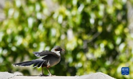 這是在拉薩市城關(guān)區(qū)拍攝的灰腹噪鹛(5月14日攝)。