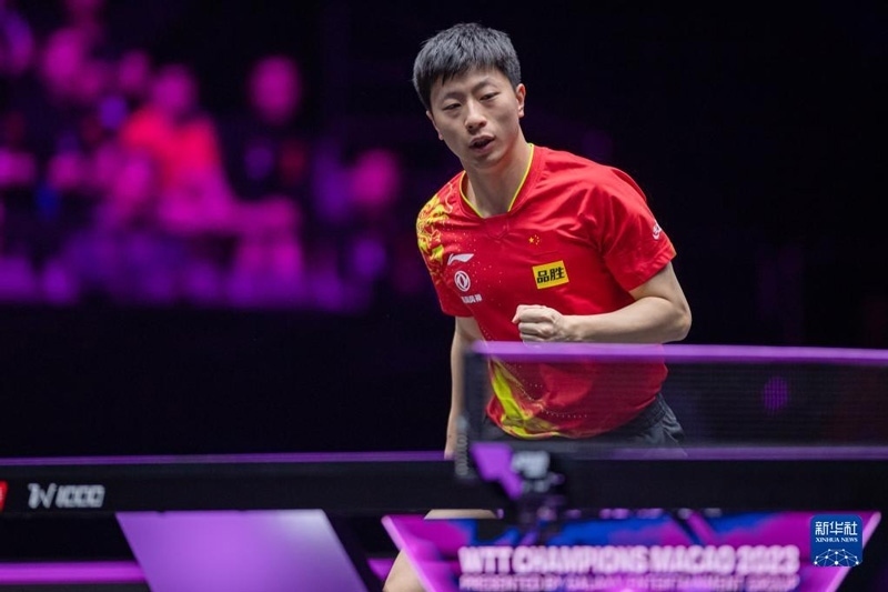 2023年4月22日,馬龍?jiān)诒荣愔小.?dāng)日,在澳門(mén)塔石體育館舉行的2023世界乒乓球職業(yè)大聯(lián)盟(WTT)澳門(mén)冠軍賽男子單打半決賽中,中國(guó)選手馬龍以4比1戰(zhàn)勝法國(guó)選手艾利克斯·勒布倫,晉級(jí)決賽。新華社記者 張金加攝