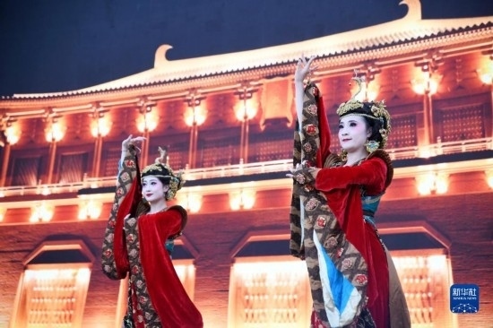 5月22日晚,舞蹈演員在2023陜西“博物館與美好生活”文博之夜活動上表演唐樂舞大曲《團亂旋》。