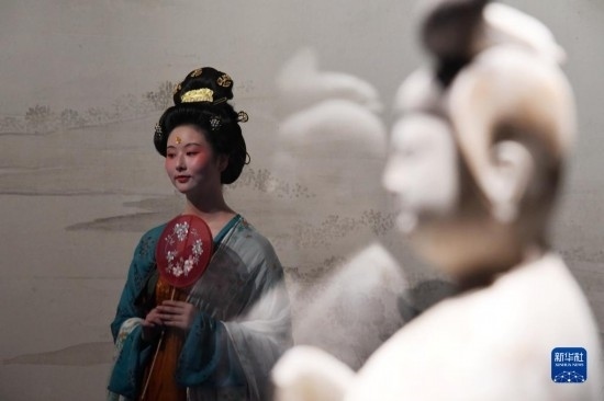 5月22日晚,在西安博物院《長安有故里——絲路少年大唐行》展覽上,演員為游客呈現(xiàn)唐朝服飾。