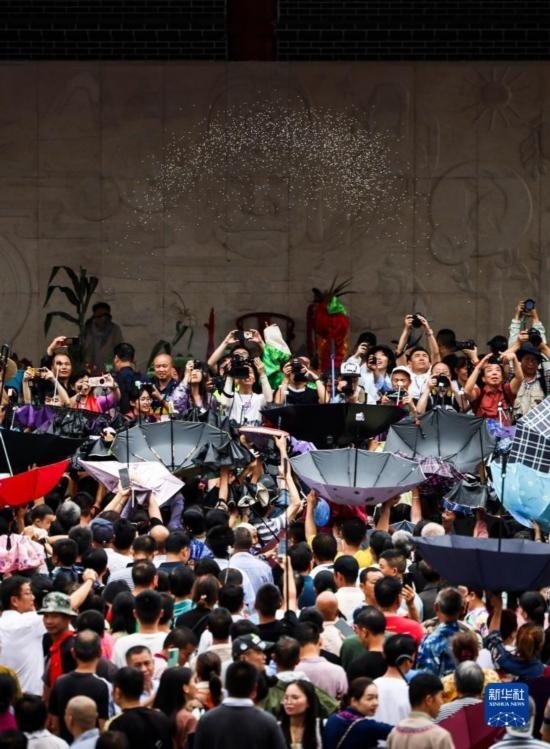 當(dāng)日,廣西環(huán)江毛南族自治縣下南鄉(xiāng)舉行2023毛南族分龍節(jié)民俗活動(dòng)。分龍節(jié)是毛南族祈神保佑豐收的傳統(tǒng)節(jié)日,也是毛南族一年一度的重大活動(dòng)。