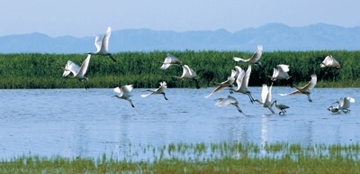 水清草綠的湖泊濕地。本報(bào)記者 張 棖攝