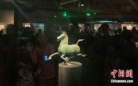 甘肅省博物館“鎮(zhèn)館之寶”銅奔馬。中新網(wǎng)記者王詩堯 攝