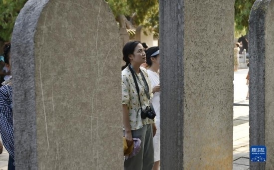 8月7日,游人在嵩陽(yáng)書院內(nèi)參觀“大唐嵩陽(yáng)觀紀(jì)圣德感應(yīng)之頌碑”。