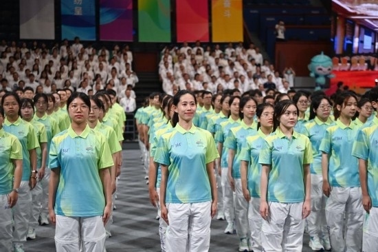 8月24日,杭州亞運(yùn)會、亞殘運(yùn)會賽會志愿者在出征儀式上。新華社記者黃宗治攝