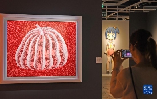 11月24日,在香港會議展覽中心,觀眾拍攝草間彌生作品《南瓜》。