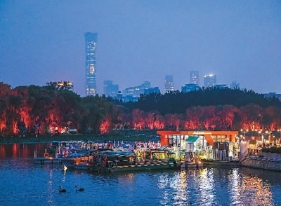北京市朝陽(yáng)區(qū)通過(guò)建設(shè)亮馬河國(guó)際風(fēng)情水岸,以河道復(fù)興引領(lǐng)城市更新,讓市民和游客樂(lè)享都市生態(tài)美景,感受多彩首都文化。圖為亮馬河國(guó)際風(fēng)情水岸風(fēng)光。 王 初攝(人民圖片)