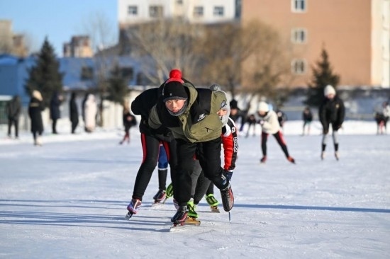 這個冬季,73歲的呼和浩特市民張凱也從輪滑“跨界”到了速滑。“冬天地面有冰霜,沒法玩輪滑了,‘十四冬’啟發(fā)了我們,可以換到冰場上去玩?!睆垊P說。