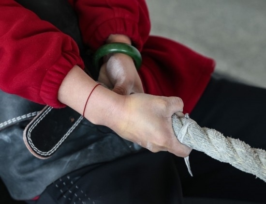 長期的訓(xùn)練,讓她們每個(gè)人的手掌都經(jīng)歷過從磨出血泡到反復(fù)脫皮的循環(huán),曾經(jīng)細(xì)嫩的雙手長滿了老繭。就連訓(xùn)練用的麻繩上,都留有被汗水和血水浸漬的痕跡。