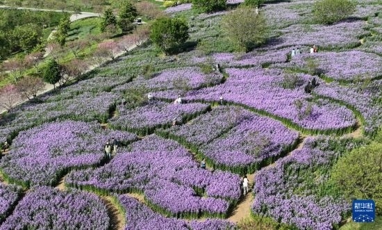 5月11日,游客在大連英歌石植物園游覽(無人機照片)。
