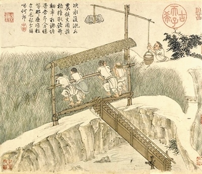 通過品讀繪畫中的水利機(jī)具發(fā)展變化,不僅可以直觀感受勞動技術(shù)的進(jìn)步,還有助于從古人識水、用水的智慧中汲取養(yǎng)分。