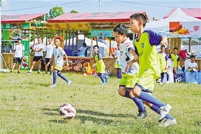 6月23日,中國奧委會第三十八屆奧林匹克日分會場活動在云南大理舉行。圖為小朋友參加迷你足球賽。李俊峰攝(人民視覺)