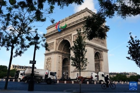 當日,殘奧會標志亮相法國巴黎凱旋門。第17屆夏季殘疾人奧林匹克運動會將于2024年8月28日至9月8日在法國巴黎舉行。
