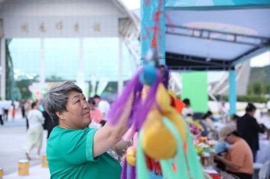 施滿義在攤位上向顧客介紹著刺繡、荷包、胸針等商品。作為自治區(qū)級(jí)非遺傳承人,施滿義非常明白客流量和曝光量對(duì)于非遺文創(chuàng)產(chǎn)品的重要性?!斑@里客流量大,像這個(gè)胸針,今天下午剛擺上沒多久已經(jīng)賣出180多個(gè)了。”