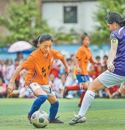 峰壩交錯,溝壑縱橫,大山擋不住夢想的光芒,也阻不斷前進(jìn)的腳步。一個個鄉(xiāng)村女孩在這里摔倒、爬起,她們腳下盤帶著一顆顆足球,從這里沖出了大山。