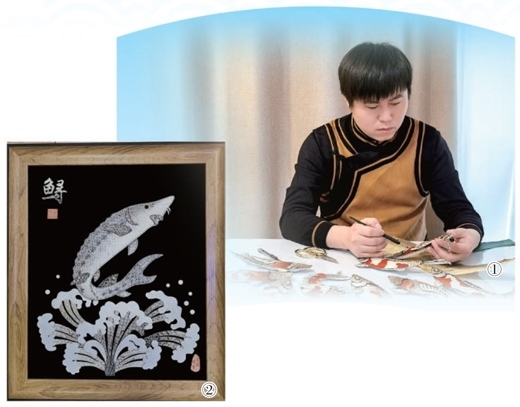 圖①:手工藝人在制作魚(yú)皮畫(huà)。圖②:魚(yú)皮畫(huà)作品。以上圖片均為同江市委宣傳部提供
