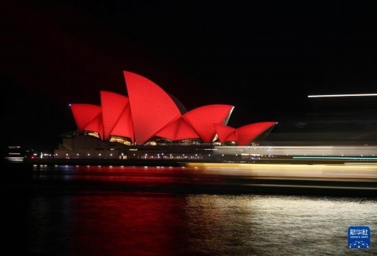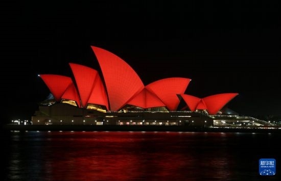 2月4日,澳大利亞悉尼歌劇院點亮“中國紅”,慶祝中國農(nóng)歷新年。