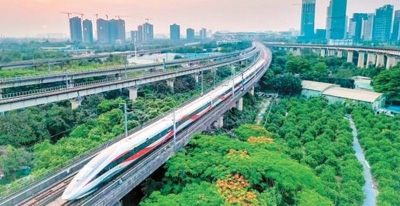 復興號列車駛出廣州南站。