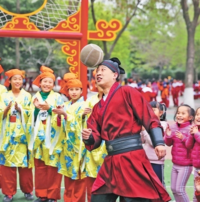 “春日蹴鞠,承載著古人的生活意趣,也帶給今人身心愉悅?!崩顐i說,“這一刻,文化傳承更具象化了!”
