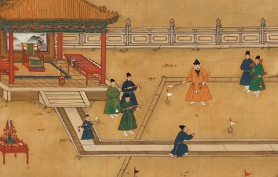 明代《明宣宗行樂圖》局部。
