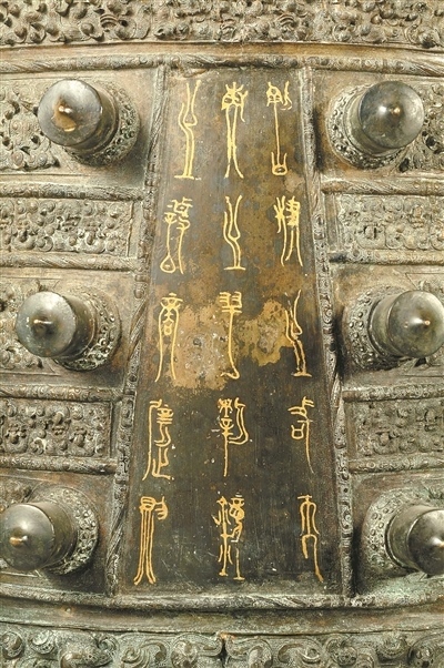 曾侯乙編鐘上的銘文,大意為音位及名稱(chēng)。