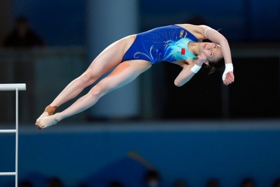 5月3日,陳芋汐在比賽中。新華社記者 雒圓攝